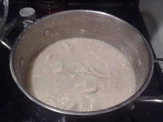 Whatcha' Got Cookin'? Well, tonight the Martha, Betty, and Rachel *hopes you get the associations* burst from my pores as I slaved in the kitchen from 3:30 to, well, now...9:07! The weather is cold and that means a hot pot of homemade chicken and dumplings in my household. Yes, I make it all from scratch! *beaming with pride* Just check this out...