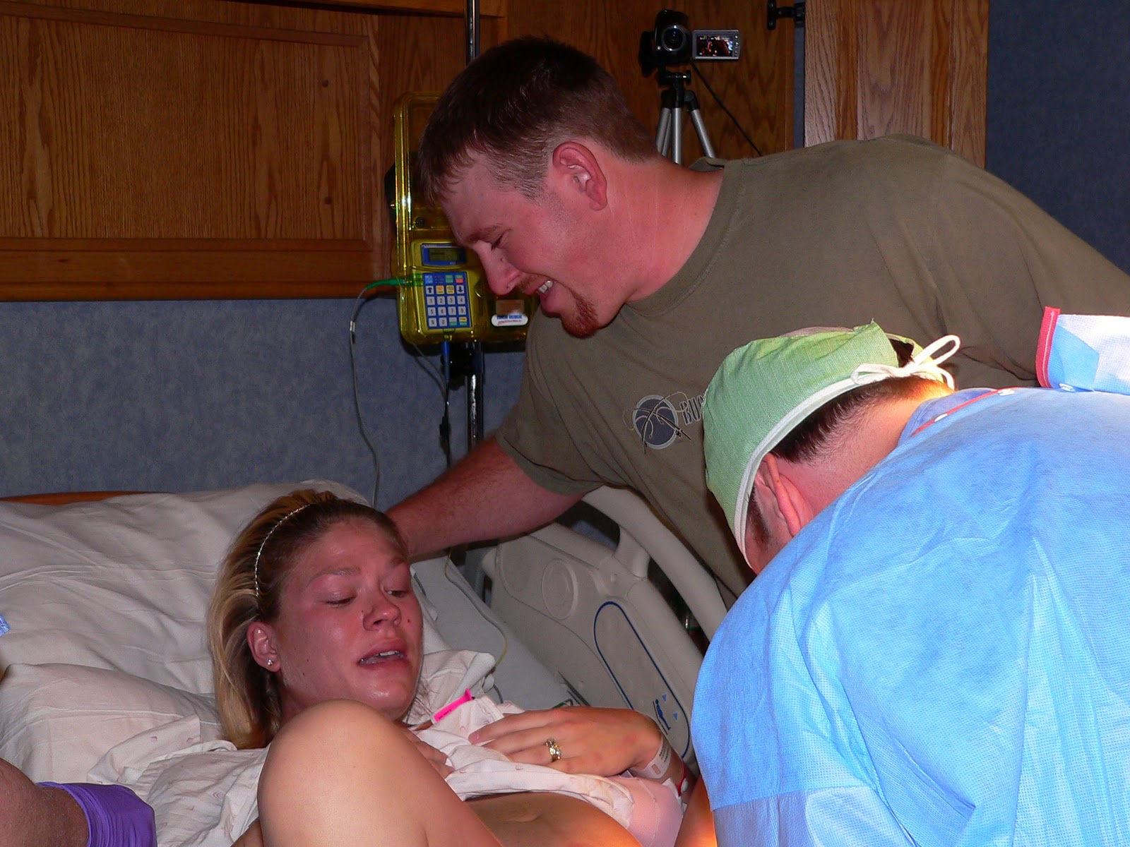 My sweet nurse, Mary, was a friend of both families. We were so lucky to have her as my labor nurse. I had already put Mary through hell the prior 26 hours. I don't know why she returned to work that morning! At 9, one hour after the previous cervical check, Mary checked me and said "You're a ten!" My response..."Shut up!" Not in a "you're kidding" kind of way, a "if you joke with me one more time I'm gonna get up and beat you with this blood pressure cuff" kind of way. Only, she wasn't kidding. Six centimeters in one hour. Incredible. It was time. Call the doctor. He got there in 30 minutes. With the epidural, I felt no pain. Other than my impatience to see her, I was in no hurry. He must have known that, because he took forever getting scrubbed up and prepped. Around ten after 10, he was in position. He gave me my one and only direction. Push...